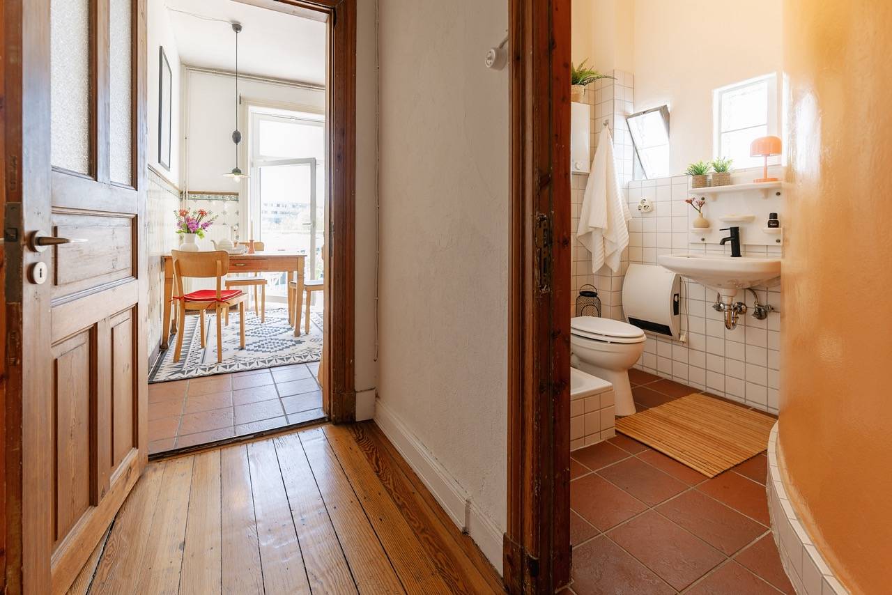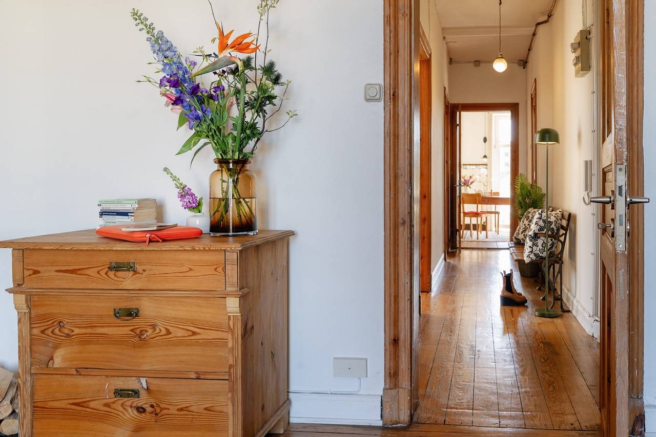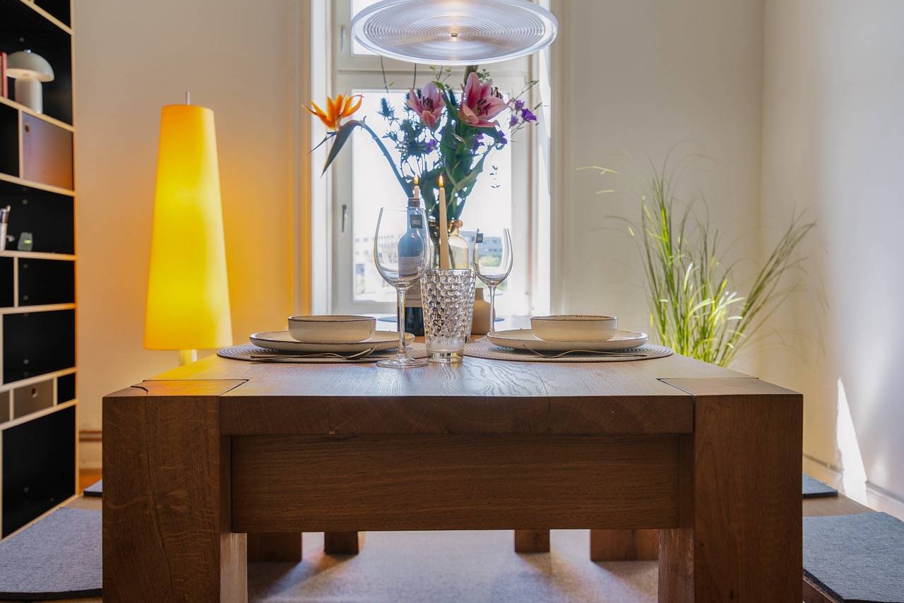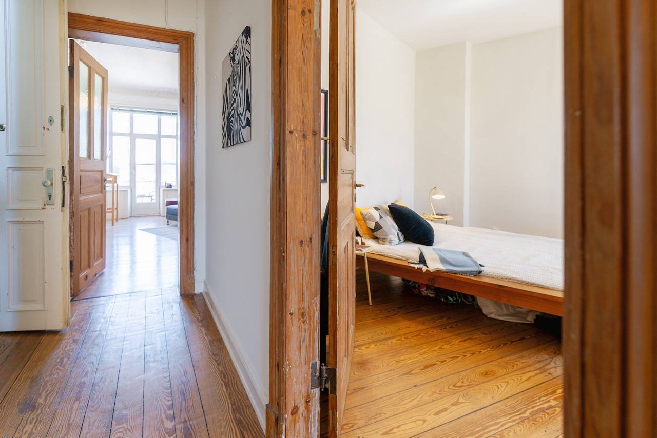 Kurzer Rundflug! Sie landen im Flur, von dem aus alle Zimmer abgehen. Er ist groß genug für Garderobe & Schuhschrank. Links blicken Sie aufs Wohnzimmer mit Balkon, Kaminofen (der leider kein CO₂-Zertifikat mehr hat) & der Ausrichtung zur Morgensonne. Geradeaus das Schlafzimmer mit Blick zum Hinterhof. Groß genug für Bett, Schrank & 2 Kommoden. Daneben rechts liegt das aktuelle Esszimmer, gefolgt von der Küche. Alle 3 Zimmer sind ab Mittag vom Sonnenlicht durchflutet. Das macht sehr gute Laune. Immer. Die Küche hat noch den alten Fliesenspiegel – wunderschön. Zuletzt 1 kleines Duschbad.