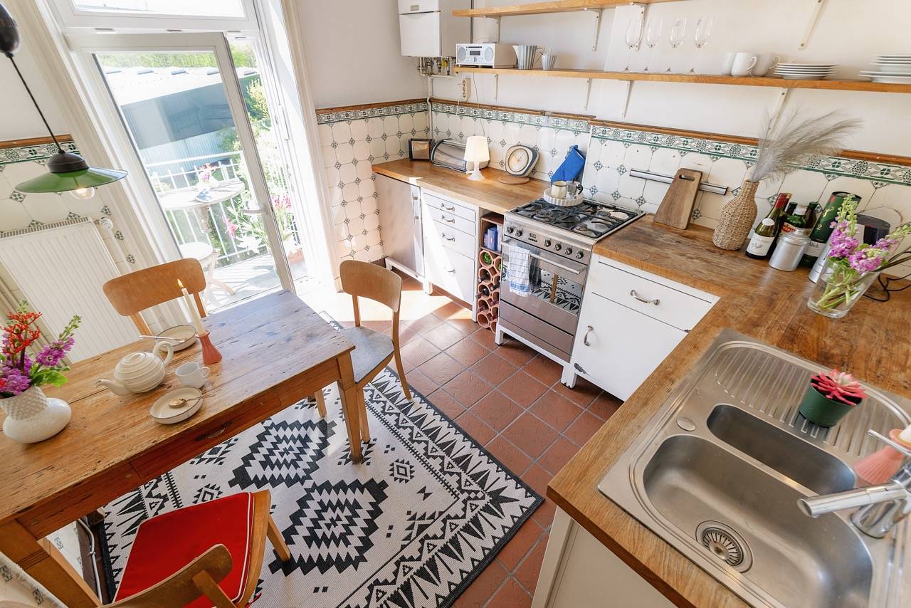 • Küche: Einbauküche (alt, aber nett)