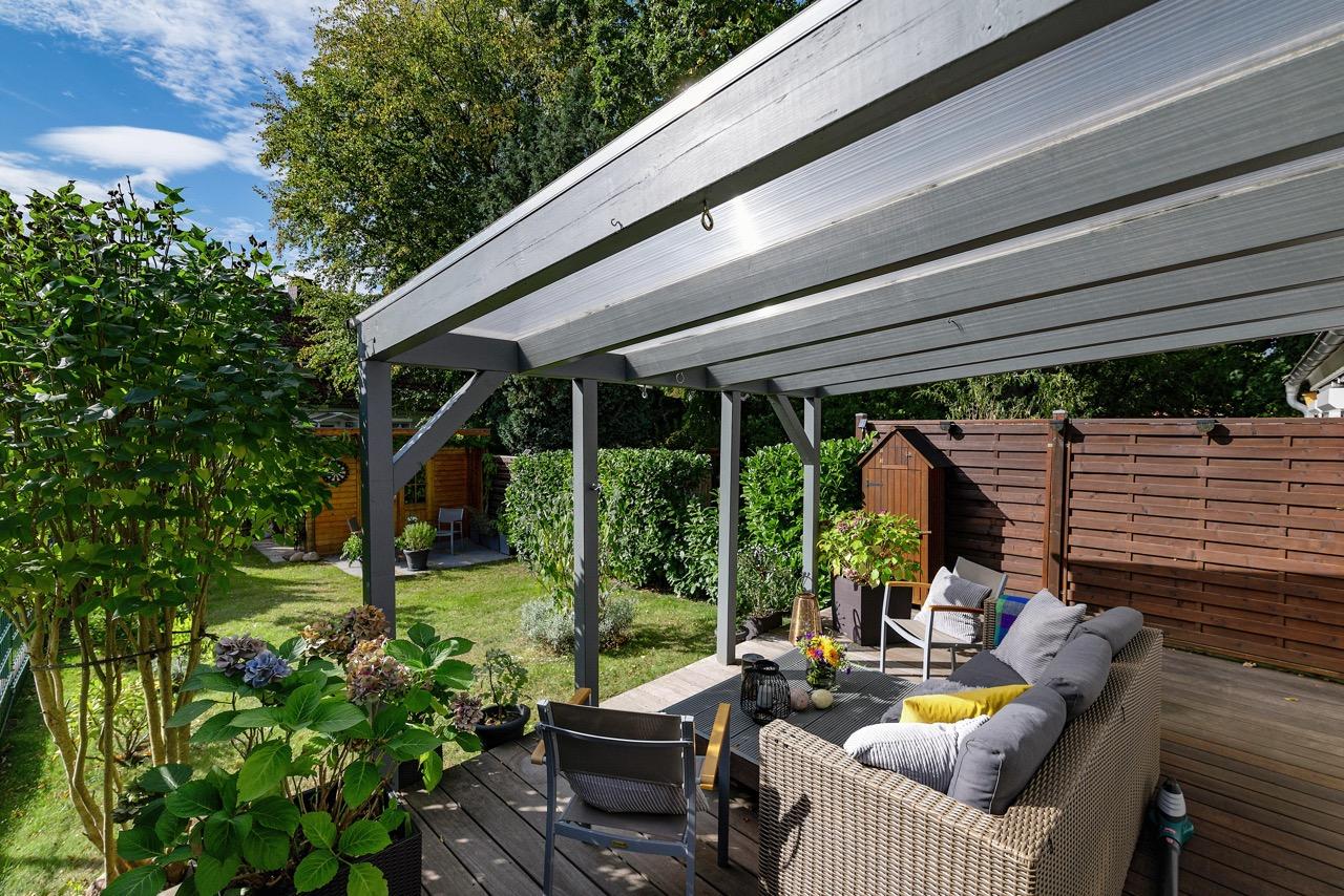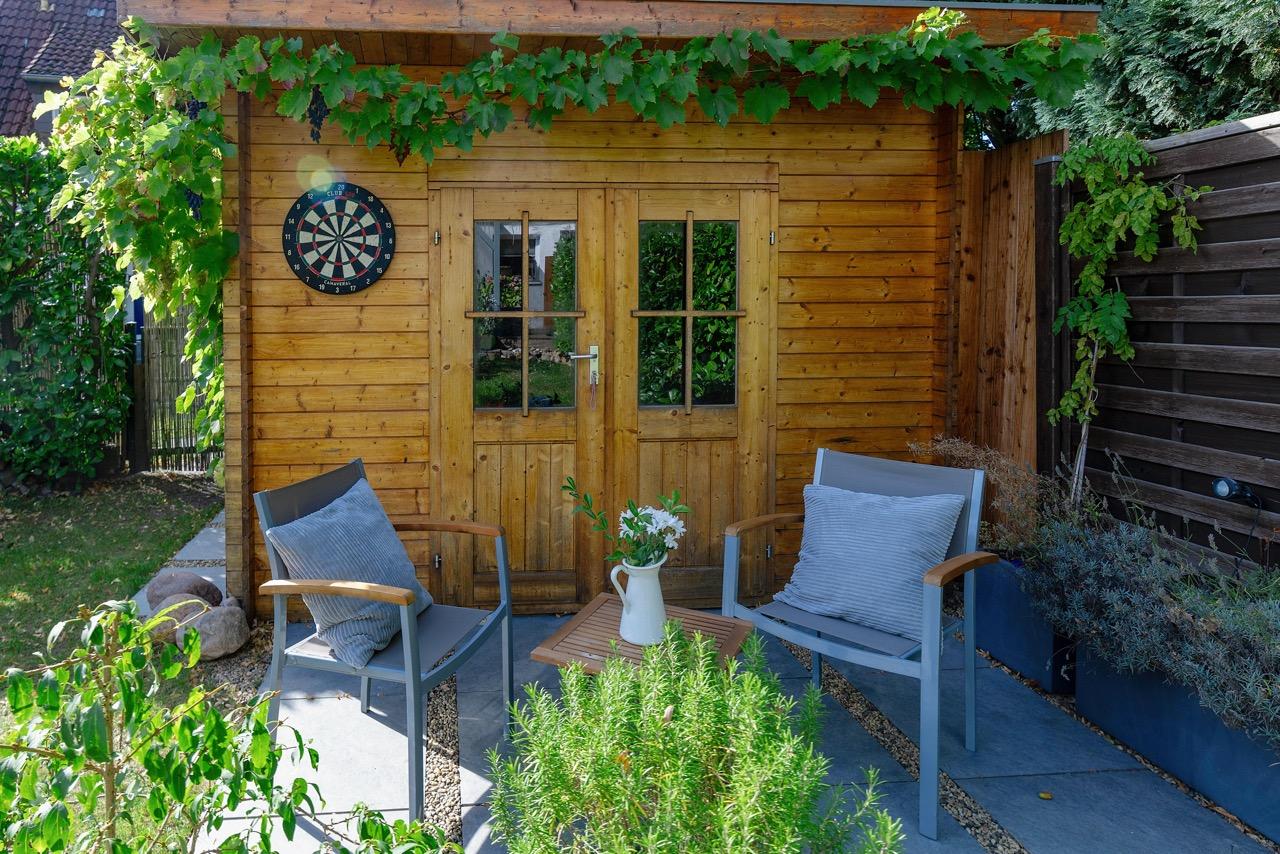 Der Außenbereich überzeugt mit 1 überdachten Terrasse, dem liebevoll angelegten Garten mit alten Apfelbäumen sowie 1 großen Gartenhaus für Räder, Gartenmöbel … Hier könnten Sie auch Ihre Werkstatt oder 1 Atelier einrichten. Das Grundstück ist auch nach hinten über 1 Gartenpforte betretbar.