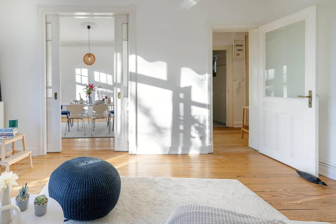 Das Nest sieht toll aus – wir haben nichts retuschiert. Wir stagen nur in echt und nicht digital. Wir sagen ganz ehrlich, was Sie vorfinden. Also: Hier muss noch was gemacht werden: 1. Alle Lackarbeiten, 2. Pitchpine schleifen & ölen, 3. Einbauküche sowie 4. Neuverputzen des halben Zimmers, weil hier jahrelang 1 Raucher gewohnt hat. Alles Weitere ist ein Kann, kein Muss. Sie können die Bäder neu machen, die Elektrik erweitern um Glasfaser & weitere Steckdosen setzen (es gibt zu wenige), vorn in den 3 Zimmern die Raufaser entfernen. Schauen Sie sich bitte auch auf Instagram den Rundflug durchs Nest an (stadtteil-makler ist unser Profil). Dann sehen Sie, was wir schon gemacht haben.