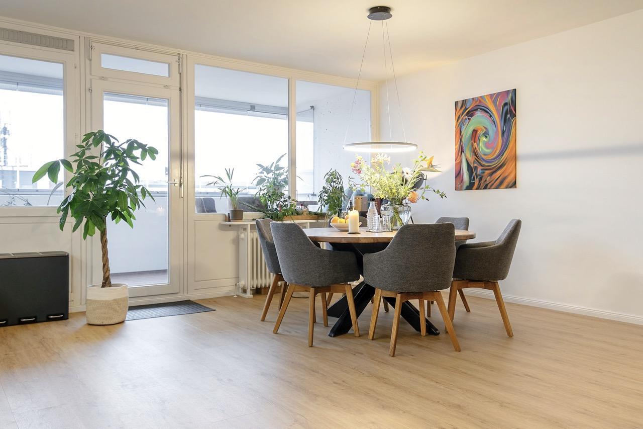 Zur Ausstattung: Die Wohnung wurde 2019/20 komplett saniert. Elektrik, Heizkörper, Bäder, Küche sind neu. Die Wände sind überall glatt verputzt. Die Fenster gestrichen & in die Loggia wurden neue Glasfenster eingebaut. Überall bis auf die Bäder (gefliest) liegt gut aussehendes Parkett im Eichendesign mit breiten Bohlen. Die Innentüren mit Beschlägen sind ebenfalls neu. Unser Fazit: Das Nest wurde geschmackvoll saniert.