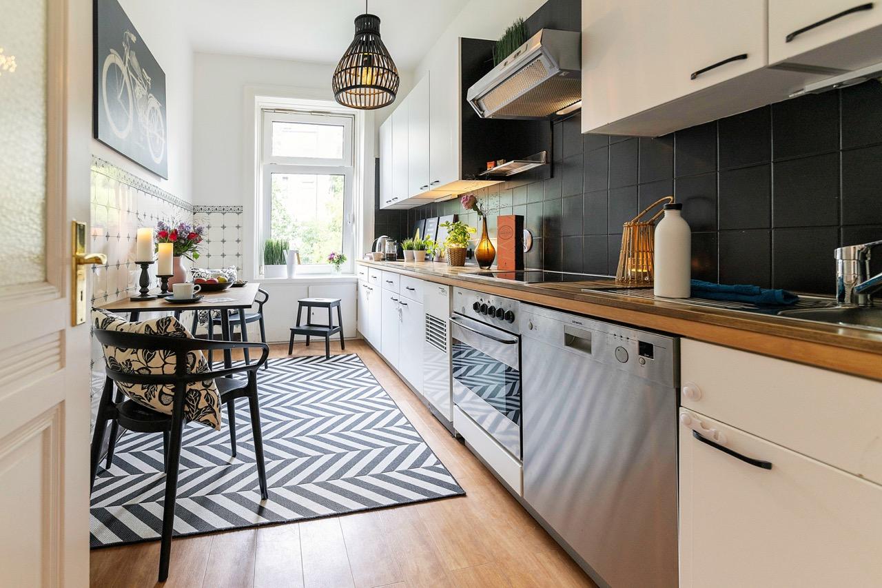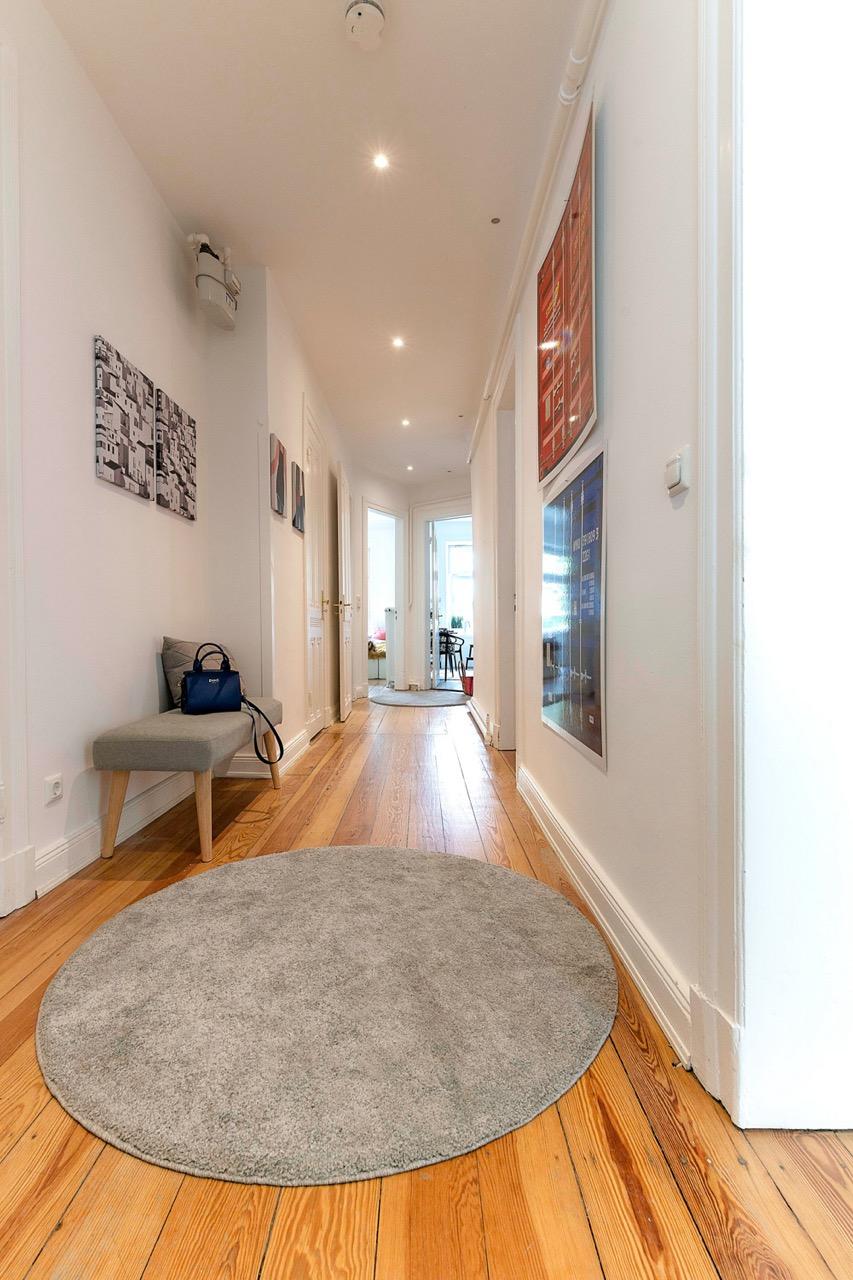 Kurzer Rundflug durchs Nest! Sie landen im langen Flur – typisch „Hamburger Knochen“. Rechts das Ess-/Wohnzimmer mit altem Kachelofen & Balkonzugang. Eine klassische Altbau-Schiebetür trennt Wohn- & Esszimmer, dahinter folgt das Arbeitszimmer. Gegenüber: Abstellkammer, das alte Wannenbad & 1 Gäste-WC mit Originalfliesen. Wunderschön. Und absolut erhaltenswert. Am Ende des Flurs rechts das Schlafzimmer, links die Küche mit 2. großen Balkon. Der wurde neu geständert, blickt auf den schönen grünen Innenhof. Hier haben Sie Morgensonne. Die Einbauten in der Küche? Nicht der Rede wert. Ihre Etagengasheizung sitzt ebenfalls in der Küche. Die Wohnung ist schön eingerichtet & gepflegt.
