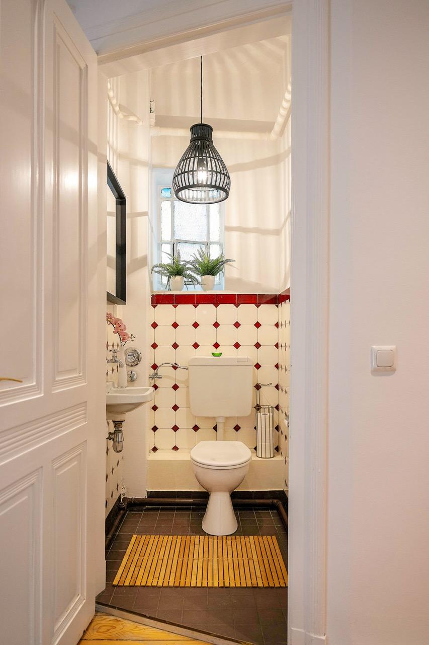 Altbau pur in vielen Details. Pitchpine-Böden, Raufaserwände, floraler Stuck, 1 Kachelofen, alte Türen mit Griffen, Originalfliesen in der Küche & Toilette. Die Elektrik ist total veraltet (2 Sicherungen) & sollte gemacht werden.