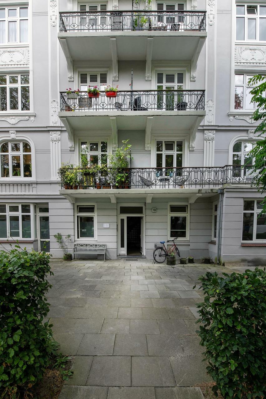 Gründerzeitklassiker von 1900. Das Haus mit 12 Einheiten liegt zurückversetzt von der Mansteinstraße – mit kleinem Vorplatz für die Bewohner, den diese im nächsten Jahr gerne gestalten wollen. Durch den großzügigen Vorplatz sind alle Nester heller als im Generalsviertel üblich. Ihre Einheit liegt im 4. OG – in den Baumwipfeln, ein echtes Adlernest.
