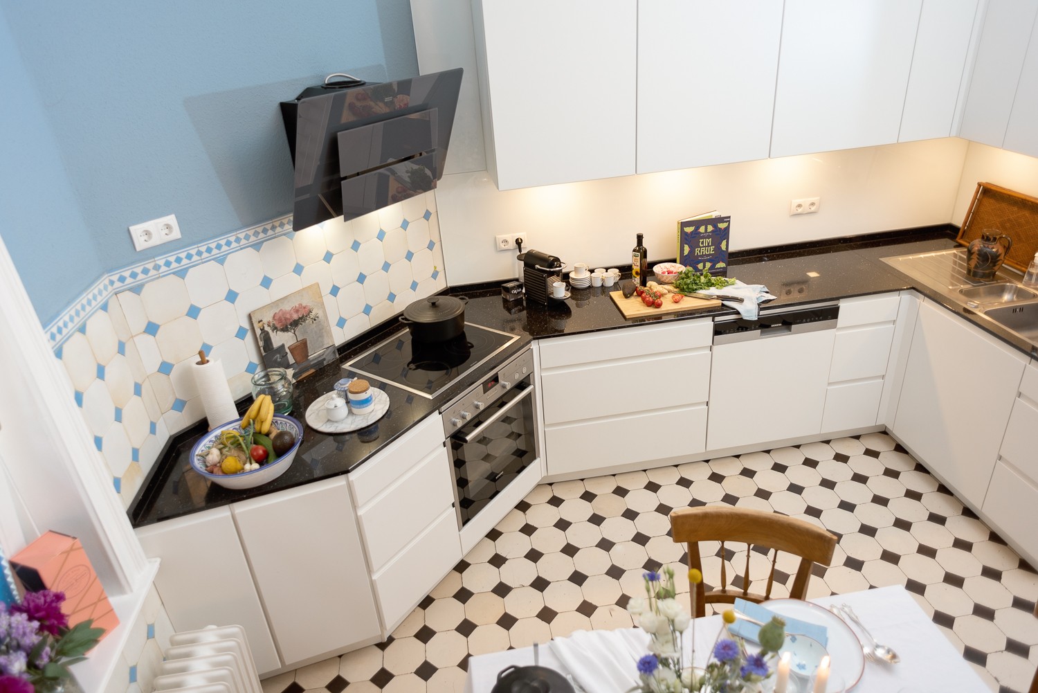 Lustwandeln im langen Flur! Weil es Freude macht, wenn Sie Ihr neues Nest erkunden. Hinter dem Schlafzimmer liegt Ihre 13 m² große Küche. Sie wurde vor 6 Monaten fertiggestellt, hat noch die Originalkacheln an den Wänden und auf dem Boden. Die schöne Küche der Marke NOLTE ist mattweiß, schlicht mit schwarzer Steinplatte. Die Geräte sind von SIEMENS. Sie hat alles, was Ihr Kochherz begehrt. Hier findet auch noch 1 Tisch mit 6 Stühlen seinen Platz.